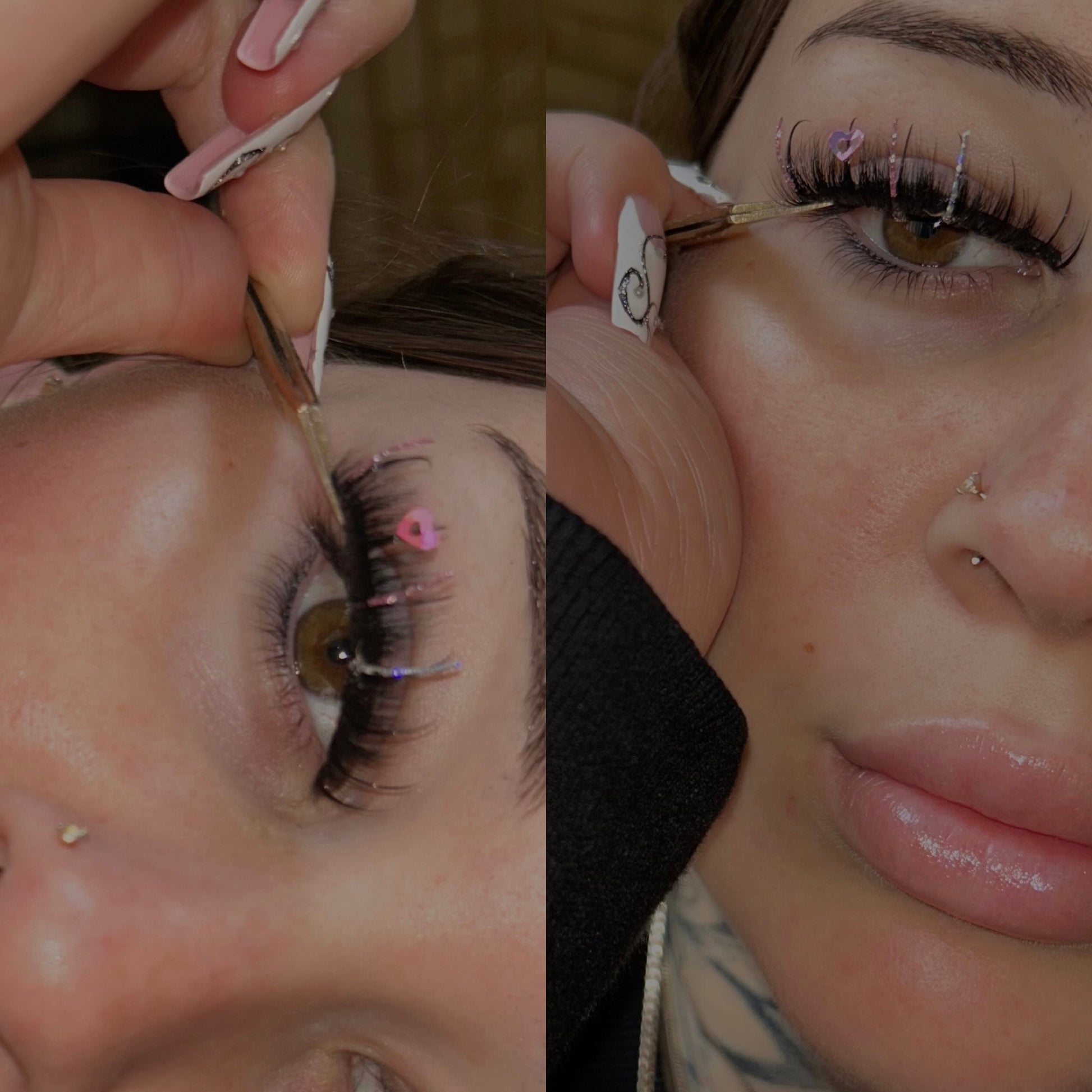 Enhance your look with my decal strip lashes! Perfect for festivals, these glitter temporary lashes provide a bold and unique touch to any makeup look. Stand out with confidence and make a statement with my strip lashes.
